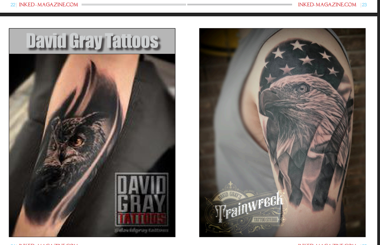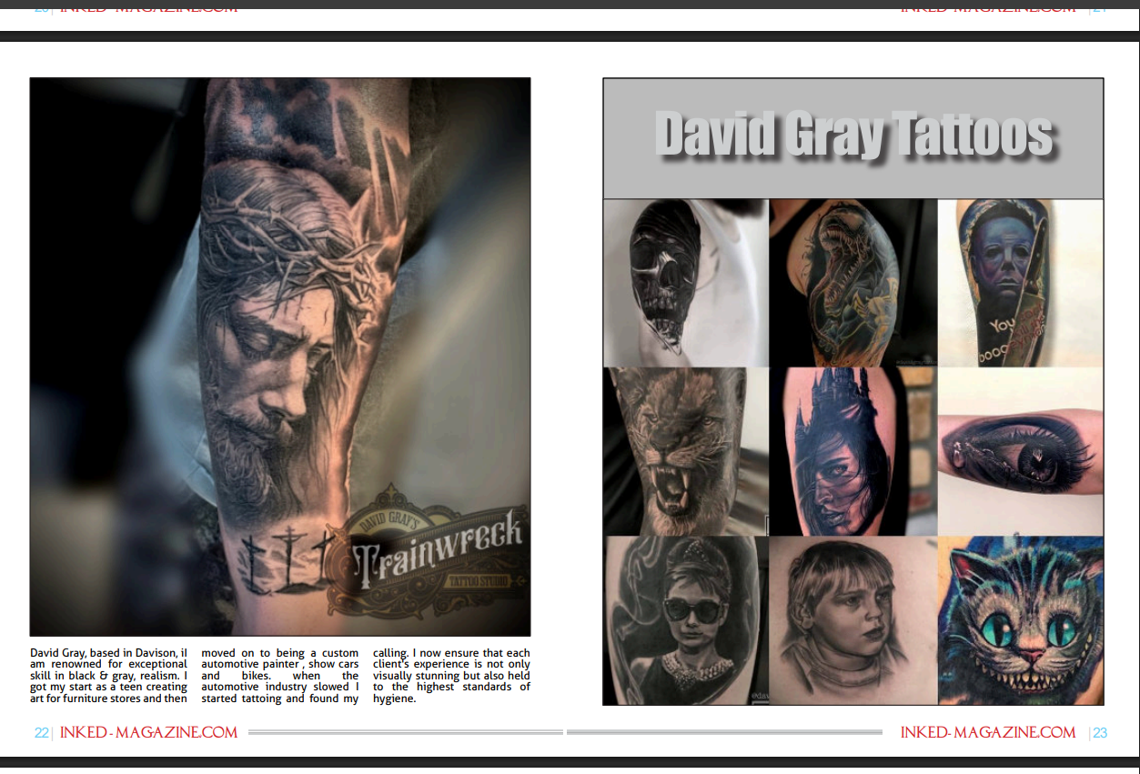 At Trainwreck Tattoo Studio, we've always known that David Gray is a powerhouse in the world of realism. Now, the rest of the industry is taking notice. We are incredibly proud to announce that David has been featured in two of the most prestigious publications in tattoo culture: Inked Magazine and Carnival of Ink Magazine.